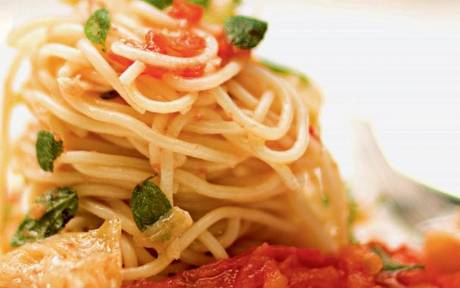 ESPAGUETE COM MOLHO DE TOMATE E BACALHAU