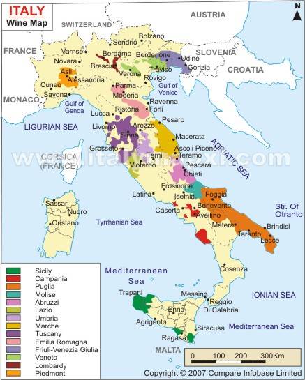 A maior parte dos vinhedos do nordeste da Itália ficam numa área que começa no Vale do Isarco, ao norte, estendendo-se ao sul de Trentino-Alto-Adige até Verona, famosa região de Soave e Valpolicela, no Veneto. Segue o arco dos Alpes, cruzando por Veneza, em cujos sopés das escarpadas montanhas alpinas fica a região dos efervescentes Proseco.
